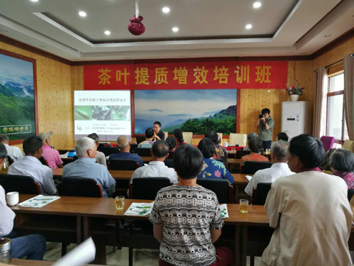 6月20日,临浦中心社在位于义桥镇寺坞岭的萧山区茶文化示范基地举办茶叶提质增效农民专业技术培训班,邀请杭州市农科院专家周铁峰老师为在座50余名茶农传授茶树病虫害绿色防控技术、茶树新品种及名优绿茶机械化加工技术、夏秋茶综合利用技术等农业科技实用技术。